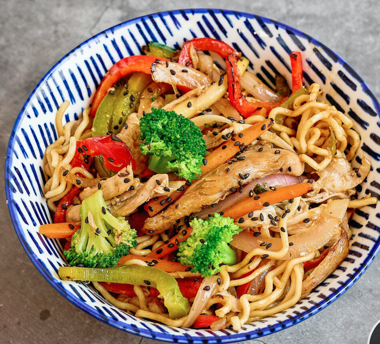 Yakisoba de pollastre i verdures